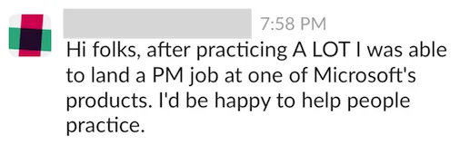 Woo hoo! I’m happy to announce another job offer win for the PM interview community. This time it’s with Microsoft! If you’re interviewing for a PM job and you’re looking for practice partners, sign up for our exclusive Slack community today.