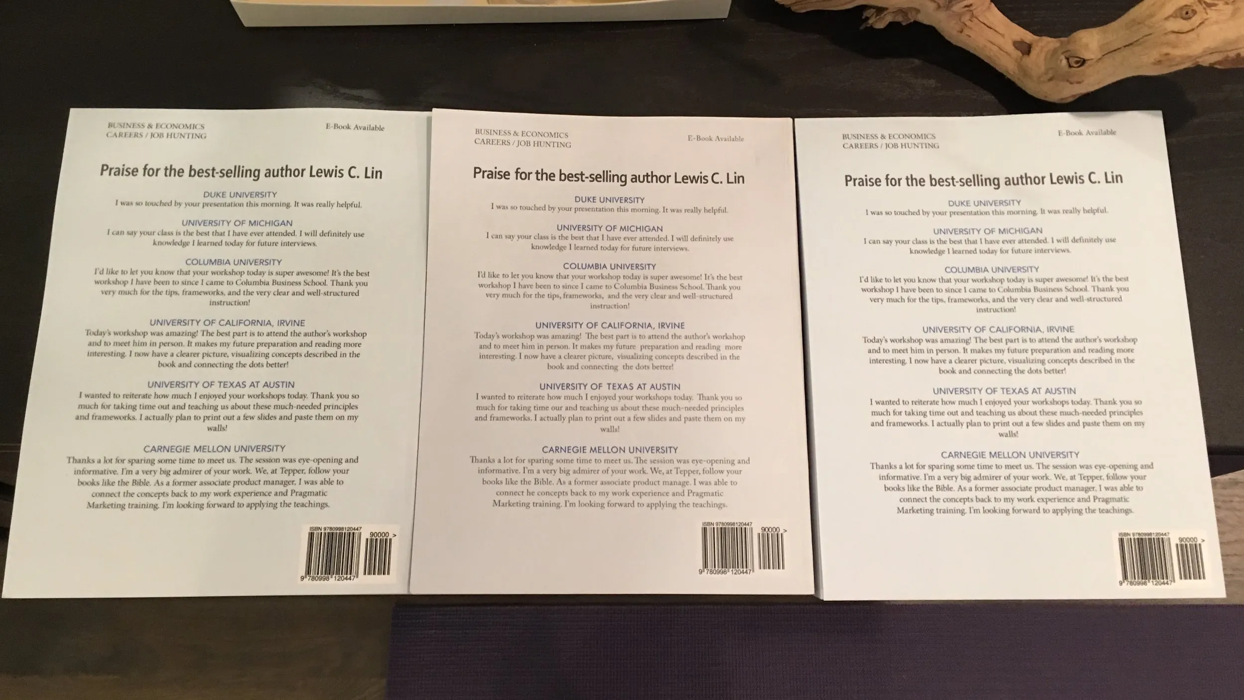 It’s harder to tell from this second photograph, but the counterfeit version (middle) doesn’t have the same color as the genuine books on the left and the right. It’s also shorter. It also some dirt and what feels like spilled water damage on the cover.