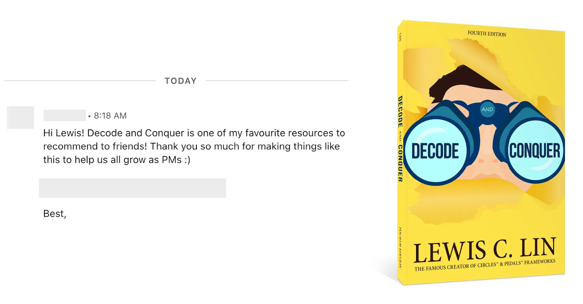 It is always nice to hear from my readers, and it is especially heartwarming to hear them recommend Decode and Conquer 4th Edition to their colleagues and friends.