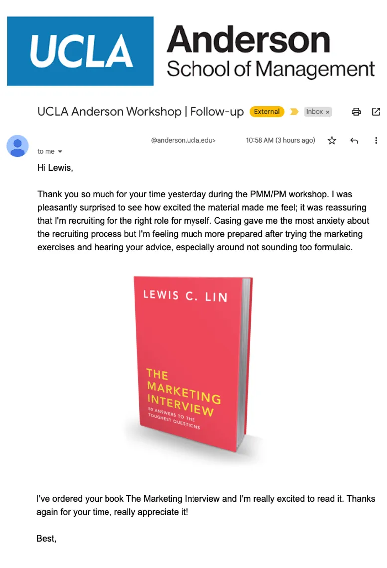 I just finished my marketing interview workshop with UCLA Anderson MBA students.