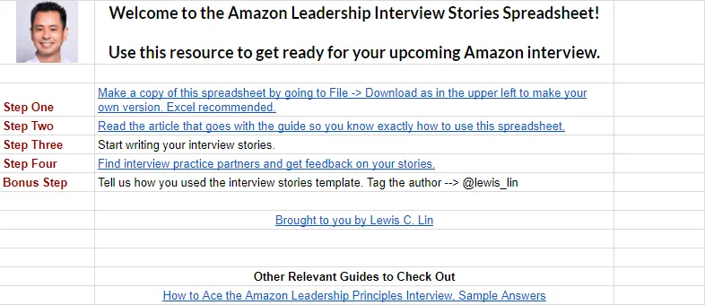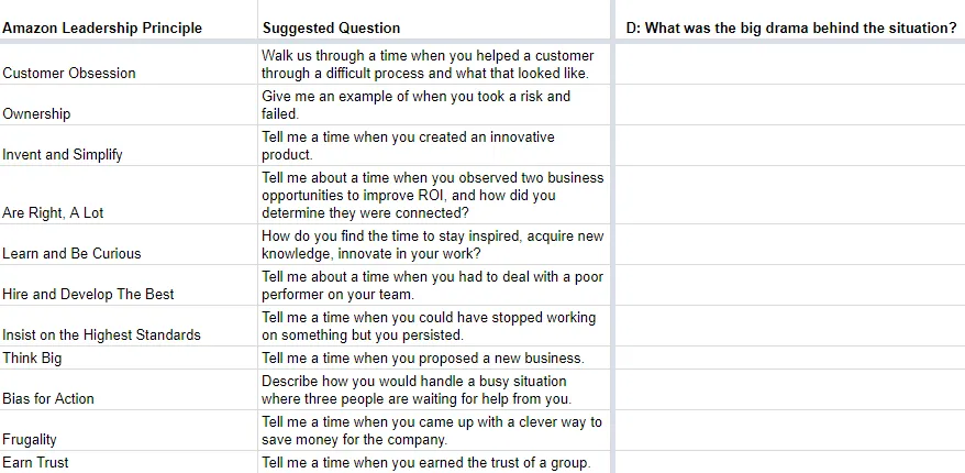 One of the best ways to prepare for the Amazon Leadership Principles interview is to organize your responses using my Amazon Interview spreadsheet based on my DIGS Method™.