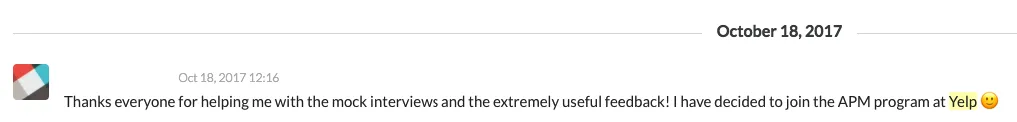 I’m happy to announce that we’ve got another win for the PM Interview Community. This time one of our members received an offer and accepted an Yelp APM role.
