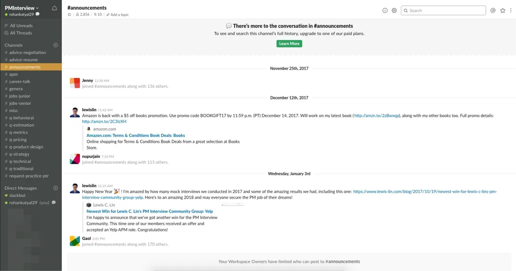 In all, I scheduled more than 100 mock interviews through the Slack community during my internship and full-time job search. The interviews usually lasted for 1 hour and 15 minutes comprising of two 30 minute long interviews where each individual took turns to interview the other followed by 15 minutes of feedback. I usually found questions to ask on Glassdoor. I tried to make it a two-way interaction by asking questions, taking pauses and often checking if they were following.