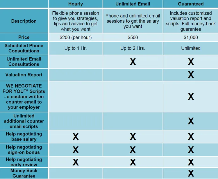 Fees for Our Salary Negotiation Service